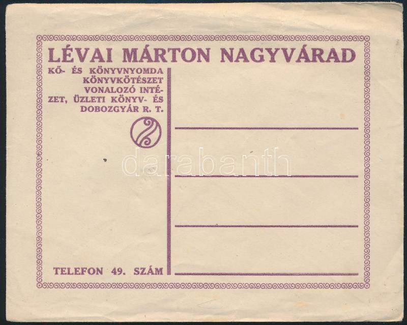 Beschreibung: Lévai Márton Sírkőraktára, Kő- és Könyvnyomda, Nagyvárad, litho reklámlap és boríték, 2 db