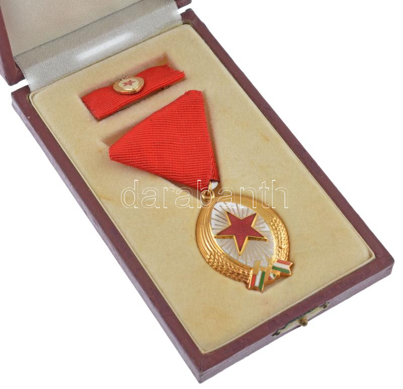 1985. "A Munka Érdemrend" arany fokozata, aranyozott és zománcozott bronz kitüntetés mellszalagon, miniatűrrel szalagsávon, kopottas eredeti tokban T:1- NMK 599.