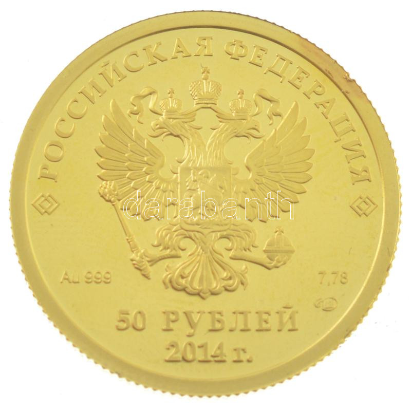 Oroszország 2014. 50R Au "Szocsi Téli Olimpia - Curling" tanúsítvánnyal, tokban (7,81g/0.999) T:PP ujjlenyomat Russia 2014. 50 Roubles Au "Sochi Winter Olympics - Curling" with certificate and capsule (7,81g/0.999) C:PP fingerprint Krause Y#1301