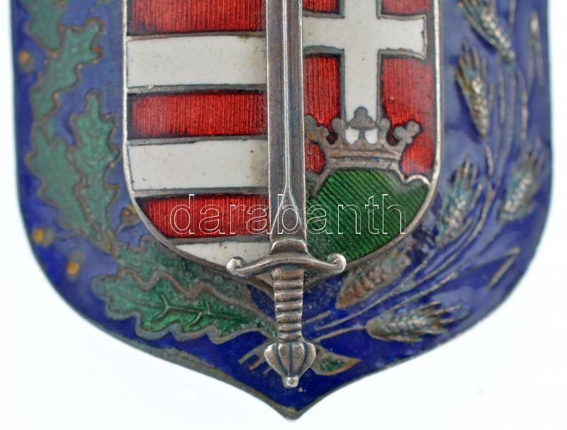1920. "Vitézi Jelvény" zománcozott bronz jelvény, ezüst kard rátéttel, ritkán előforduló csavaros hátlappal! Gyártói jelzés nélkül, hátlapon bekarcolt "1276" sorszámmal (58x38mm) T:1- zománchibák / Hungary 1920. "Badge of the Order of Vitéz" enamelled bronze badge, with silver word overlay, with rarely seen screw-type back! Without maker's mark and engraved "1276" serial number (58x38mm) C:UNC enamel error NMK 334.