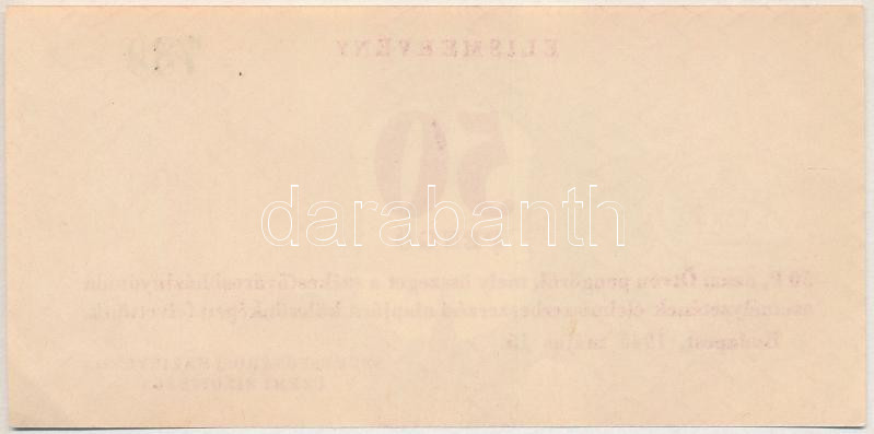 Beschreibung: 1945. "Székesfővárosi Házinyomda" elismervény 50P-ről "739" sorszámmal T:I Adamo BUP10.1.2
