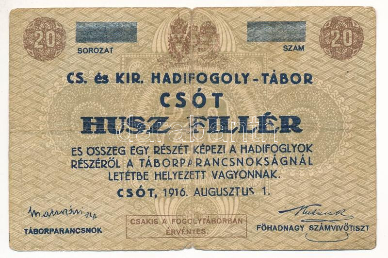 Beschreibung: Csót / Hadifogolytábor 1916. augusztus 1. 20f sorozatszám nélkül T:III- Adamo HHC-1.3.2