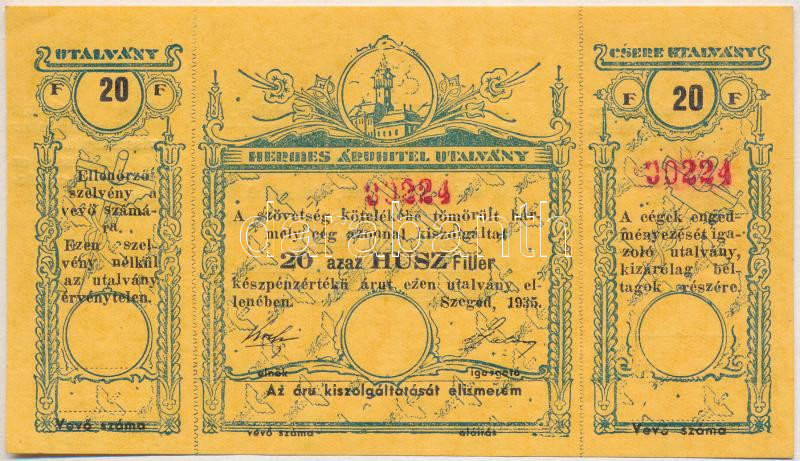 Beschreibung: Szeged 1935. 20f "Hermes" áruhitel utalvány "90224" T:I Adamo SZE37.2