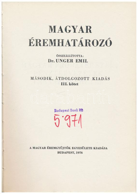 Dr. Unger Emil: Magyar éremhatározó III. kötet. Magyar Éremgyűjtők Egy... https://www.darabanth.com/de/432-Fernauktion/432.0/Numismatik/Numismatische-Literatur~1500002/Dr-Unger-Emil-Magyar-eremhatarozo-III-kotet-Magyar-Eremgyujtok-Egyesulete-Budapest-197~II2767763
