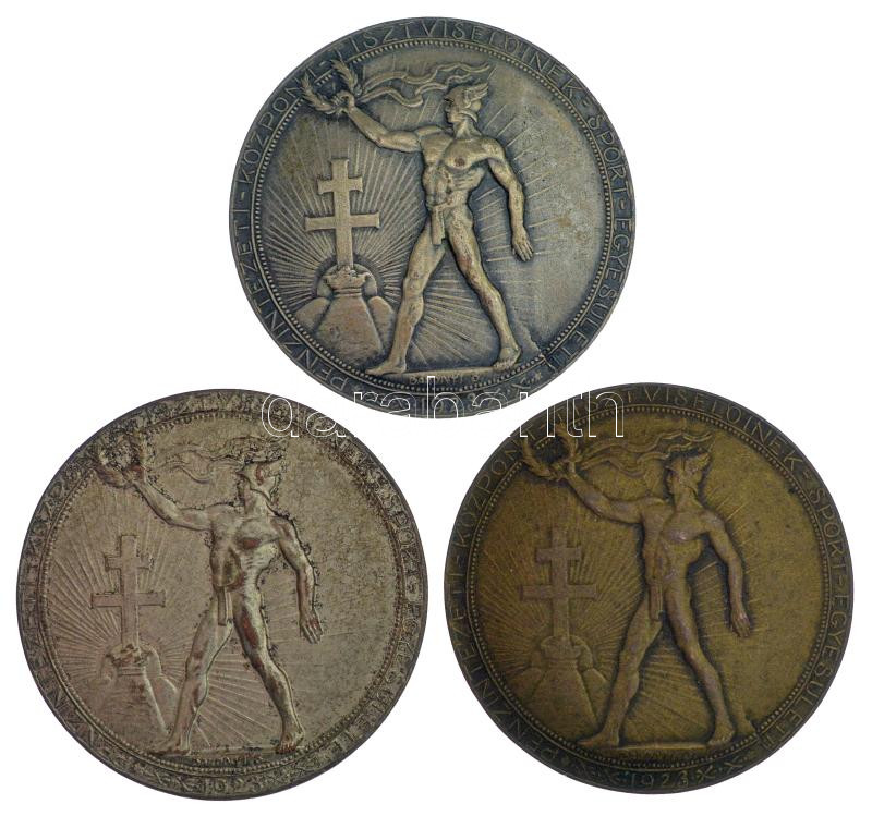 Bakonyi Sándor (1892-1937) 1931. "Pénzintézeti Központ Tisztviselőinek Sport Egyesülete" 3db bronz díjérem (ebből 2db ezüstözött). Az egyik ezüstözött darab "Ludvig" gyártói jelzéssel, gravírozás nélkül, a másik 2db "Arkanzas BPest" gyártói jelzéssel és gravírozással (38mm) T:2 patina