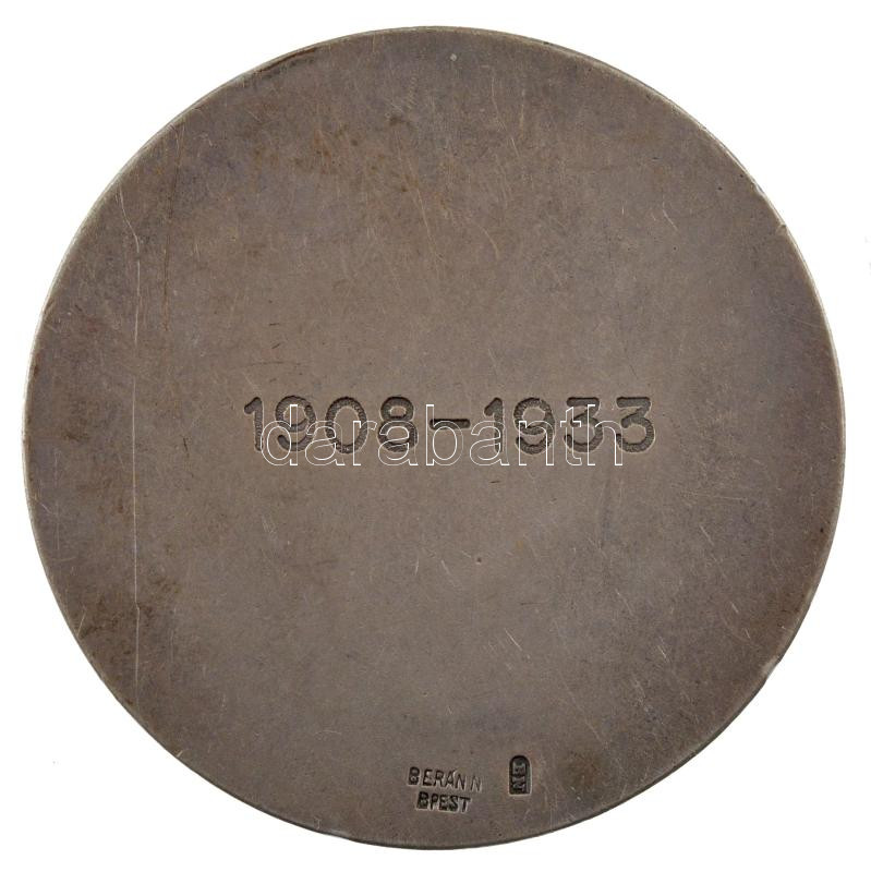 Beck Ö. Fülöp (1873-1945) 1933. "Magyar Korcsolyázó Szövetség - Alakult 1908" jelzetlen Ag emlékérem, "BERÁN N BPEST" és "BN" jelzésekkel, hátlapon "1908-1933" gravírozással (22,73g/40mm) T:1- kis ph.