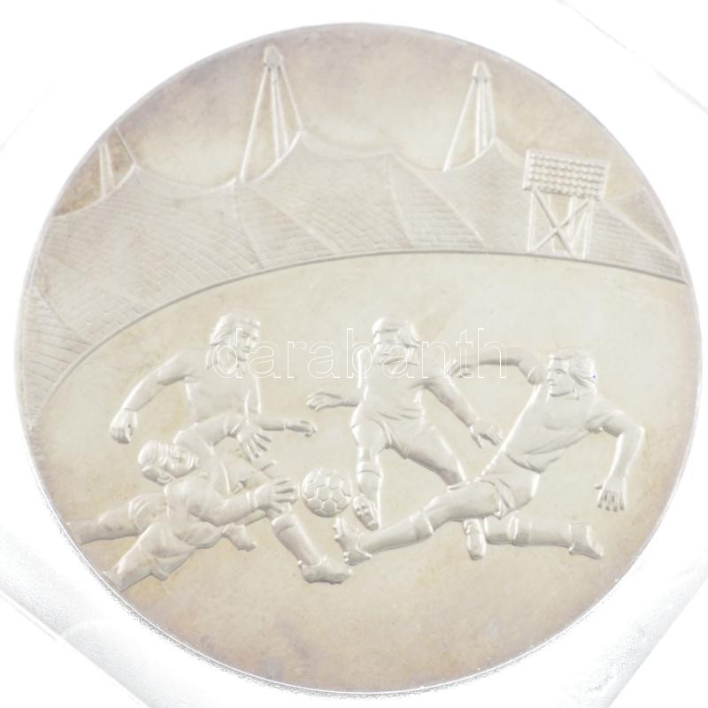 FRG ~1974. "1974 FIFA World Cup Munich, Netherlands - FRG 1:2" two-sided, hallmarked Ag commemorative medallion in plastic case (49,66g/0.999/50mm) C:AU patina