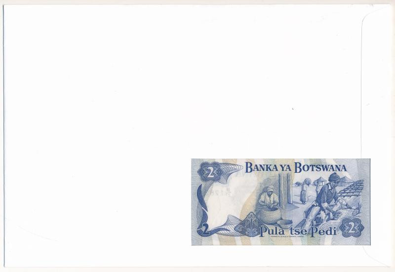 Botswana 1982-1992. 2 Pula in envelope with stamp and cancellation C:UNC