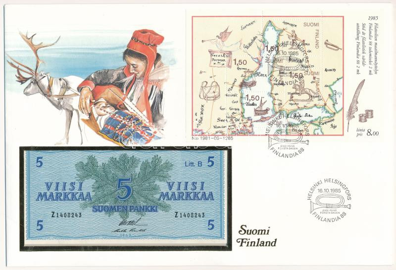 Finlan... https://www.darabanth.com/de/432-Fernauktion/432.0/Numismatik/Umschlage-mit-Munzen-und-Banknoten~1500004/Finnorszag-1963-5M-felbelyegzett-boritekban-belyegzessel-TI-Finland-1963-5-Markkaa-in-env~II2766634