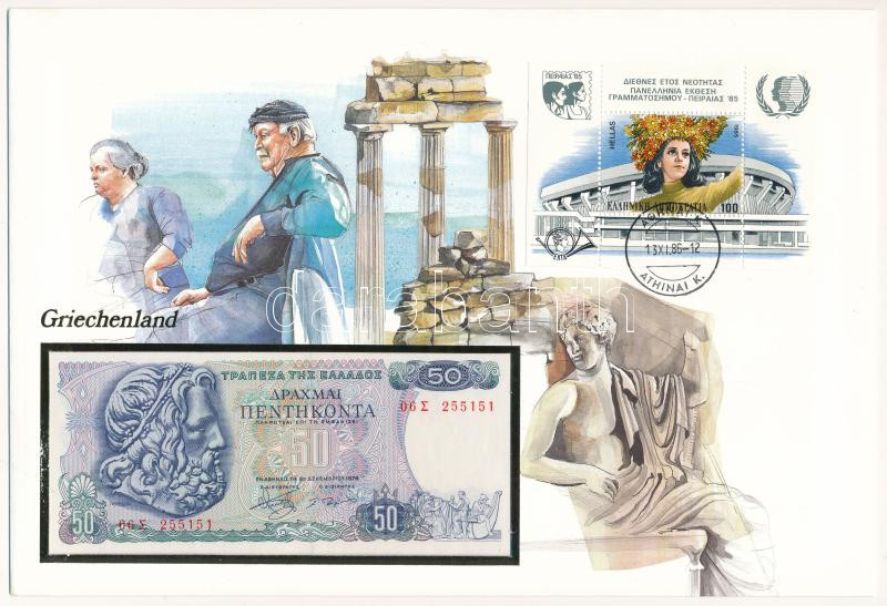 Gr... https://www.darabanth.com/de/432-Fernauktion/432.0/Numismatik/Umschlage-mit-Munzen-und-Banknoten~1500004/Gorogorszag-1978-50Dr-felbelyegzett-boritekban-belyegzessel-TI--Greece-1978-50-Drachmai~II2766668