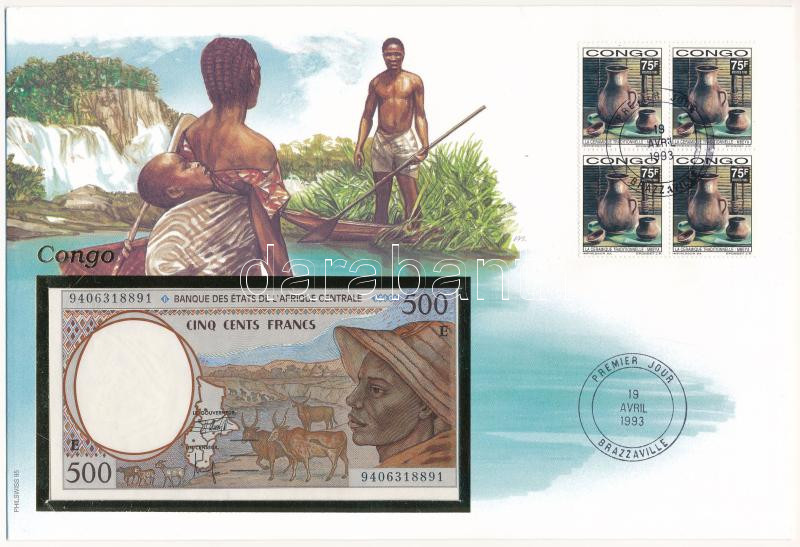 Közép-Afrika / Kongó bankjegyes pecsételt és bélyeges boríték benne Kamerun 1993-2002. 500Fr T:I