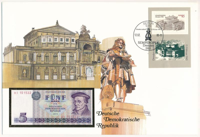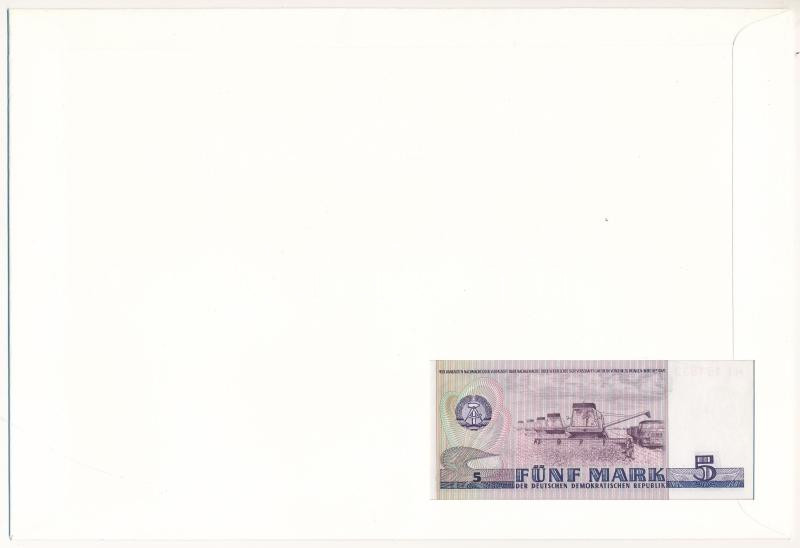 German Democratic Republic 1975. 5 Mark in envelope with stamp and cancellation C:UNC