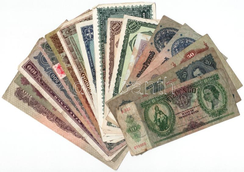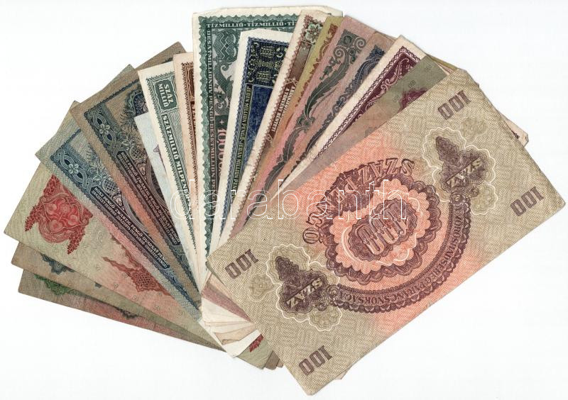 17db-os vegyes inflációs pengő és adópengő tétel T:III,III- https://www.darabanth.com/de/432-Fernauktion/432.0/Numismatik/Ungarische-Banknoten~1500007/17db-os-vegyes-inflacios-pengo-es-adopengo-tetel-TIII-III-~II2787964