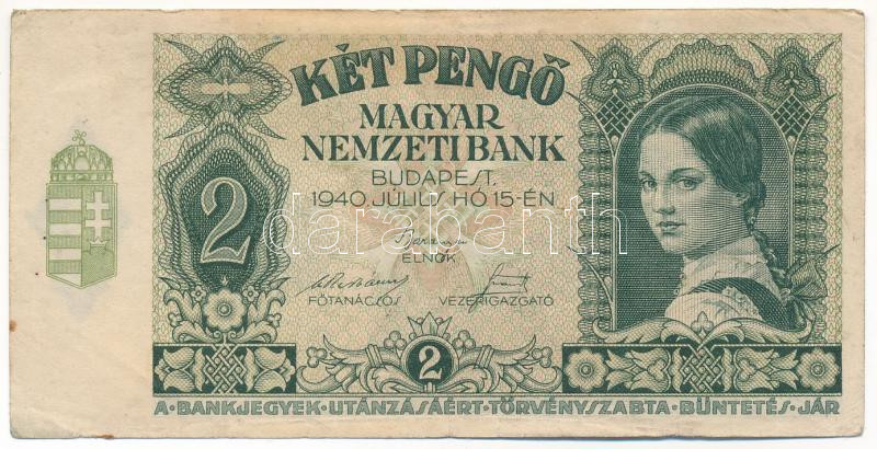 1940. 2P "J 673 093414" T:III fo. Adamo P2 https://www.darabanth.com/de/432-Fernauktion/432.0/Numismatik/Ungarische-Banknoten~1500007/1940-2P-J-673-093414-TIII-fo-Adamo-P2~II2777989