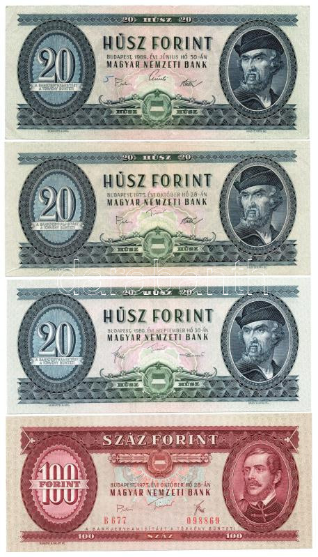 Beschreibung: 1969-1975. 10Ft (2xklf) + 1965-1980. 20Ft (3xklf) + 1975-1980. 50Ft (2xklf) + 1975. 100Ft T:III közte több szép papír