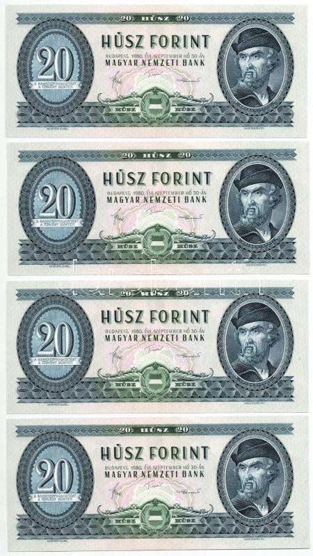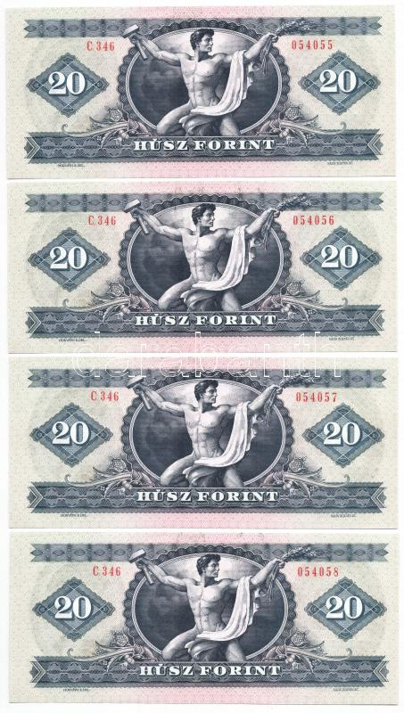 Beschreibung: 1980. 20Ft (4x) sorszámkövetők "C 346 054055 - C 346 054058" T:II Adamo F17