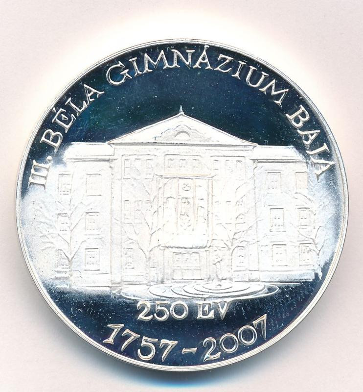 2007. "III. Béla 1172-1196 / III. Béla Gimnázium Baja" kétol... https://www.darabanth.com/de/432-Fernauktion/432.0/Numismatik/Ungarische-Gedenkmunzen-Plaketten~1500009/2007-III-Bela-1172-1196-III-Bela-Gimnazium-Baja-ketoldalas-fem-emlekerem-peremen-FEM~II2785318