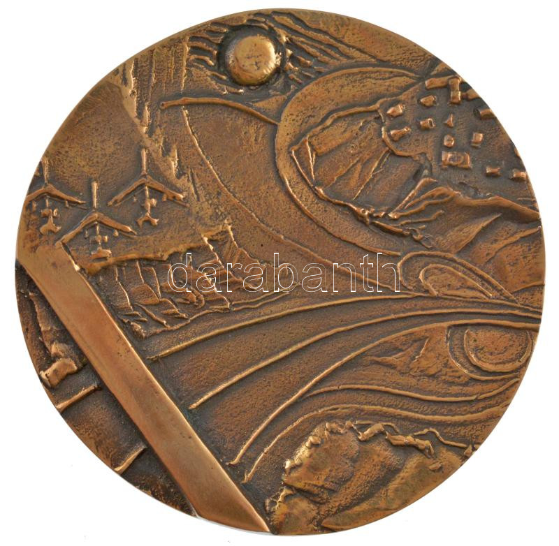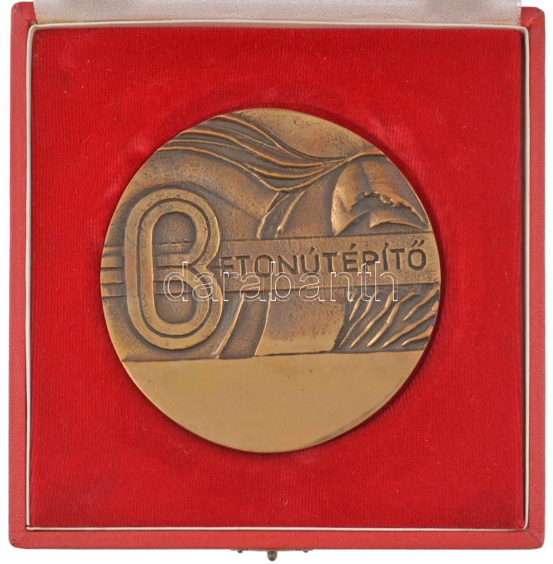 ~1970-1980. "Betonútépítő" kétoldalas, öntött bronz plakett, eredeti tokban (100mm) T:1-