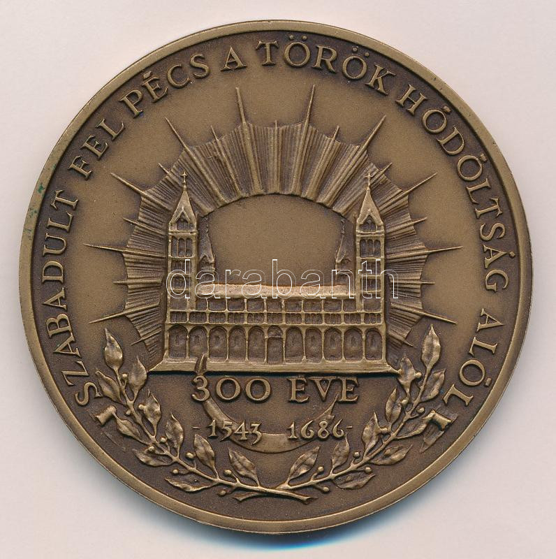Bozó Gyula (1913-2004) 1986. "Patrona Hungariae / 300 éve szabadult fel Pécs a török hódoltság alól 1543-1686" kétoldalas bronz emlékérem (70mm) T:1- kis patina
