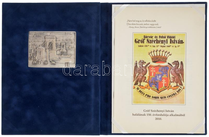 Fritz Mihály (1947-) 2010. "Gróf Széchenyi István halálának 150. évfordulója" kétoldalas ezüstözött bronz emlékplakett kötésben rögzítve, melléklettel (78x60mm) T:1-