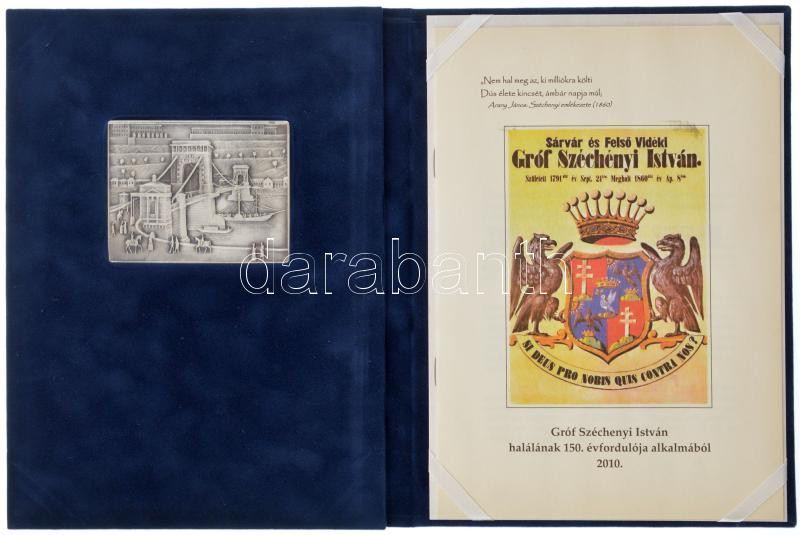 Fritz Mihály (1947-) 2010. "Gróf Széchenyi István halálának 150. évfordulója" kétoldalas ezüstözött bronz emlékplakett kötésben rögzítve, melléklettel (78x60mm) T:1-