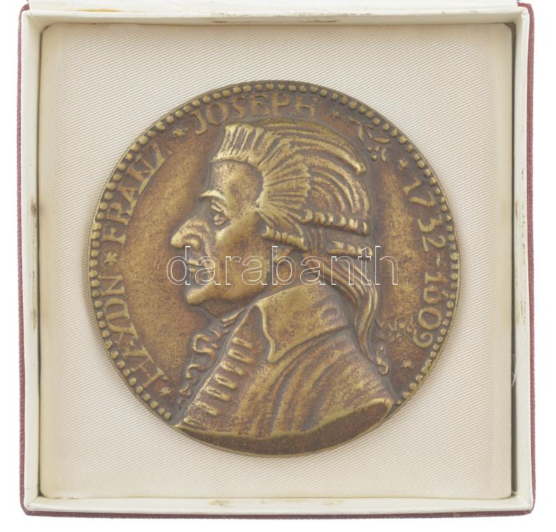 Beschreibung: Solymári Valkó László (1909-1984) 1955(?) "Franz Joseph Haydn 1732-1809" egyoldalas öntött bronz emlékérem dísztokban (83mm) T:1-