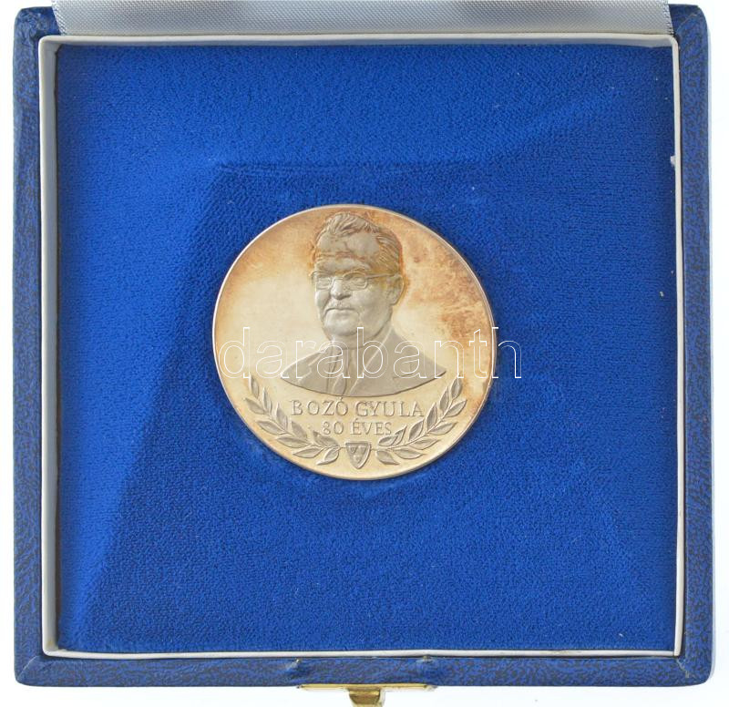 Szabó Géza (1939-2018) 1993. "Bozó Gyula 80 éves" kétoldalas Ag emlékérem eredeti kissé kopott tokban (36.15g/0.925/43mm) T:1- (eredetileg PP) patina