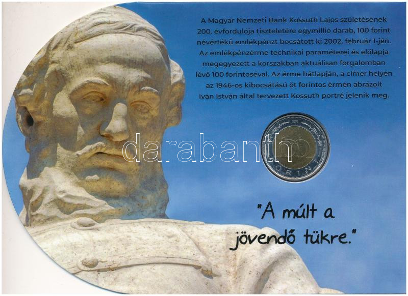 2002. 100Ft "Kossuth"' "20 éves a Kossuth 100 fori... https://www.darabanth.com/de/432-Fernauktion/432.0/Numismatik/Ungarische-Munzen-und-Munzen-mit-ungarischem-Munzzeichen~1500008/2002-100Ft-Kossuth-20-eves-a-Kossuth-100-forintos-2022-bliszterben-187-sorszammal-T2~II2782327