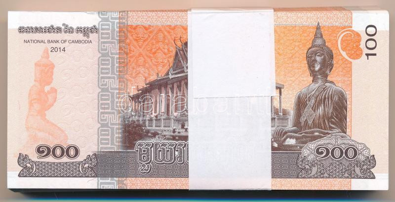 Cambodia 2014. 100 Riels (100x) consecutive serials "0513001 - 0513100", with slightly damaged currency strap C:UNC,AU