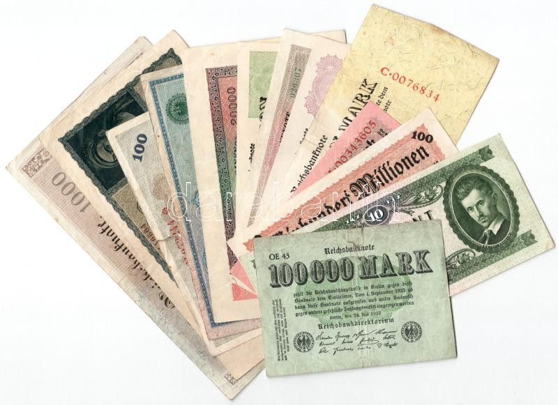 Német Birodalom 1908-1923. 13db-os, főleg inflációs Márka bankjegytétel + Magyarország 1975. 10Ft T:II-III-
