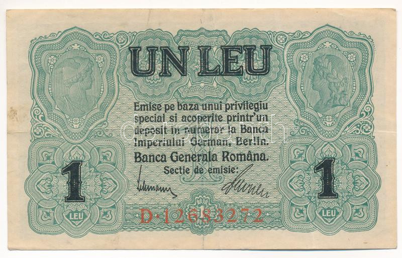 Romania / German Occupation 1917. 1 Leu "D 12683272" C:F fine paper, spotted