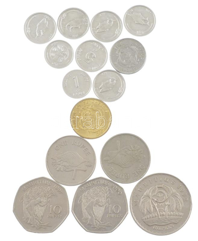 15db-os vegyes külföldi érmetétel, közte Seychelles-szigetek, Maldív-szigetek, Mauritius T:2,2-