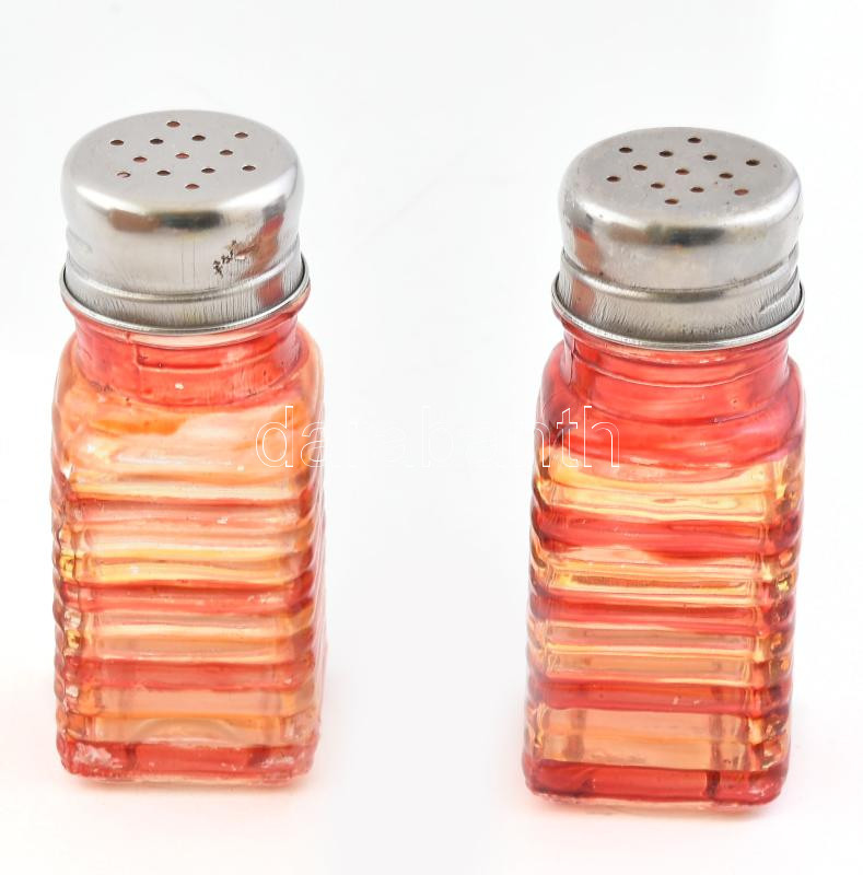 2 db színes üveg só- és borsszóró, fém kupakkal, kis kopásnyomokkal, m... https://www.darabanth.com/de/432-Fernauktion/432.0/Porzellan-Keramik-Glass/Glaser~2000100/2-db-szines-uveg-so-es-borsszoro-fem-kupakkal-kis-kopasnyomokkal-m-9-5-cm~II2783609