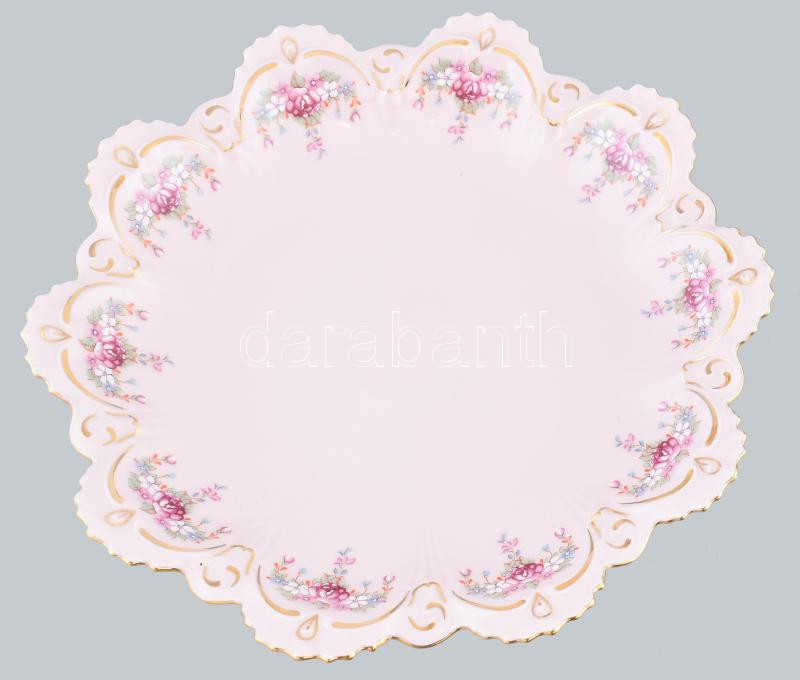 Beschreibung: Haas & Cijzek rózsaszín sütemény kínáló. Matricás, jelzett, hibátlan d: 24 cm