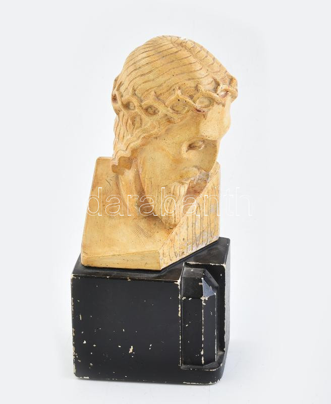 Beschreibung: Mindas? 1936 jelzéssel: Ecce homo. Art deco kerámia. Fa talapzaton, kis repedéssel, 27 cm