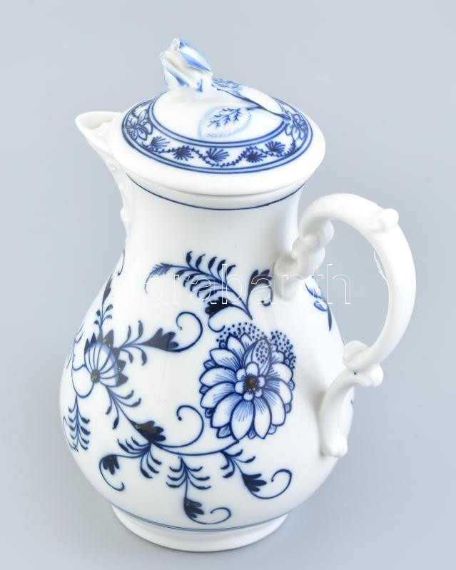 Beschreibung: Meissen porcelán kanna, kézzel festett, jelzett, felső belső peremén lepattanással, m: 22 cm