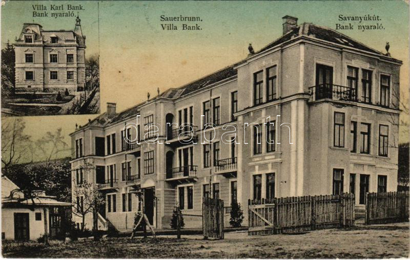 Beschreibung: 1912 Savanyúkút, Sauerbrunn; Bank nyaraló. Hönigsberg Frigyes kiadása / Villa (EK)