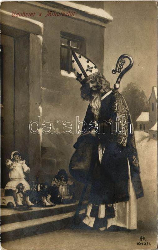 1908 Üdvözlet a Mikulástól / Saint Nicholas greeting (Rb) https://www.darabanth.com/de/433-Fernauktion/433.0/Ansichtskarten/GruC39Fkarten-Feste~1500090/1908-Udvozlet-a-Mikulastol-Saint-Nicholas-greeting-Rb~II2791473
