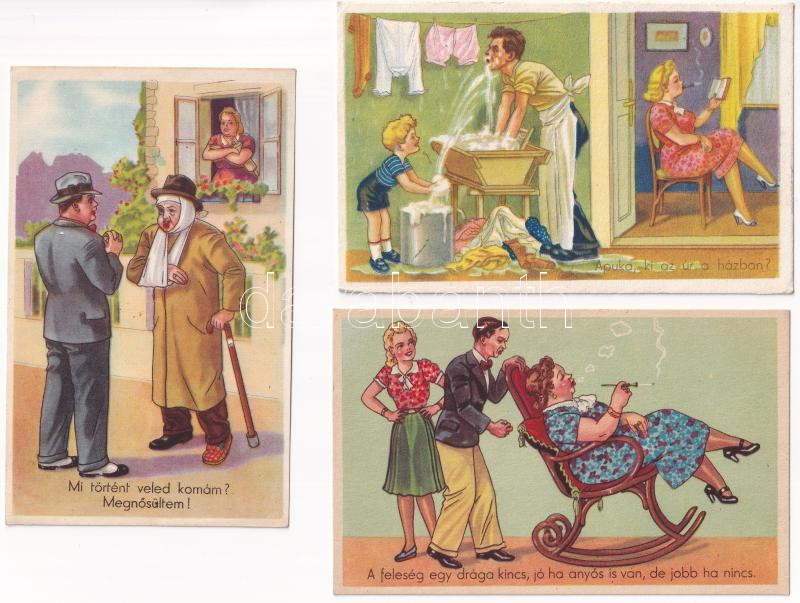 6 db régi magyar humoros képeslap: anyós és házaspár / 6 pre-1945 Hung... https://www.darabanth.com/de/433-Fernauktion/433.0/Ansichtskarten/Humor~1500050/6-db-regi-magyar-humoros-kepeslap-anyos-es-hazaspar-6-pre-1945-Hungarian-humorous-postcards~II2793197