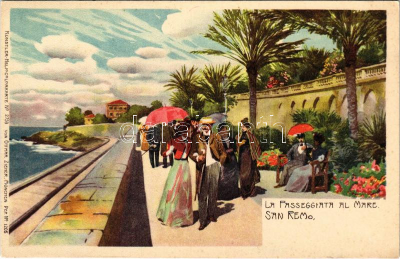 Beschreibung: Sanremo, San Remo; La Passeggiata al Mare / seaside promenade. Künstler-Heliocolorkarte No. 2759. von Ottmar Zieher. litho