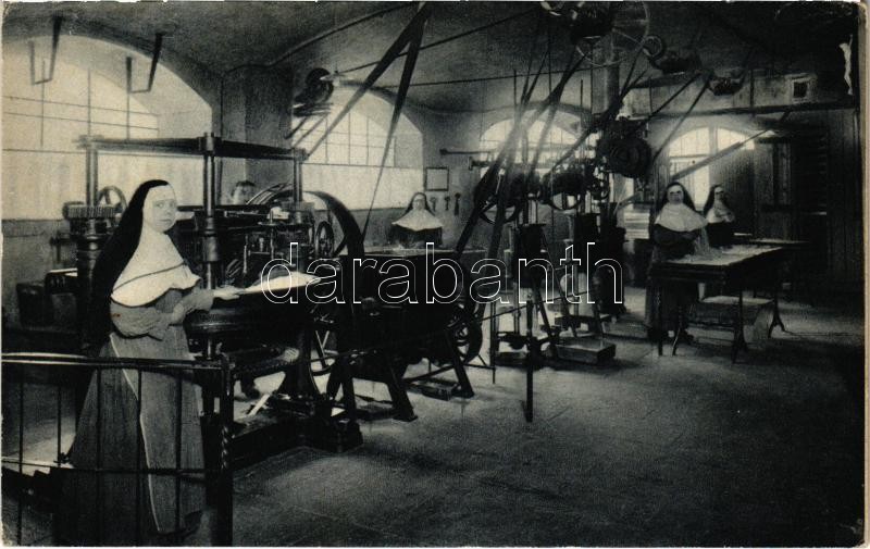Beschreibung: Torino, Turin; Piccola Casa Div. Provvidenza S. Gius. B. Cottolengo, pastificio / olasz tésztagyár belső nővérekkel / Italian pasta factory interior