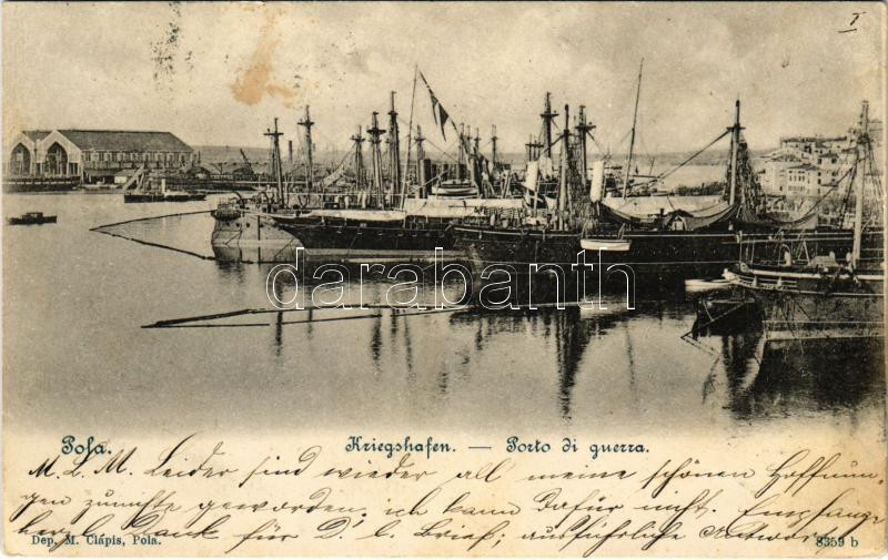 1900 Pola, Pula; K.u.K. Kriegsmarine Kriegshafen / Osztrák-magyar hadi... https://www.darabanth.com/de/433-Fernauktion/433.0/Ansichtskarten/Kriegsschiffe~1500042/1900-Pola-Pula-KuK-Kriegsmarine-Kriegshafen-Osztrak-magyar-haditengereszeti-kikoto-Aust~II2790392