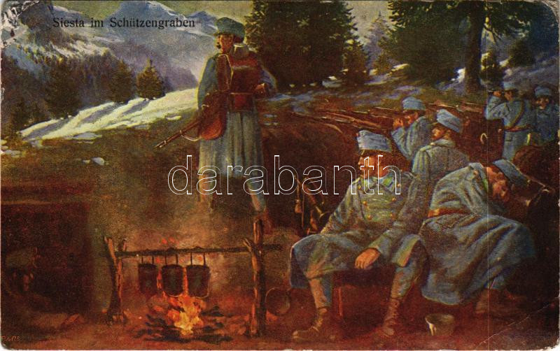 1916 Siesta in Schützengraben / Pihenő a lövészárokban / WWI K.u.k. mi... https://www.darabanth.com/de/433-Fernauktion/433.0/Ansichtskarten/Militaria~1500058/1916-Siesta-in-Schutzengraben-Piheno-a-loveszarokban-WWI-Kuk-military-art-plus-Kuk-10-~II2792942