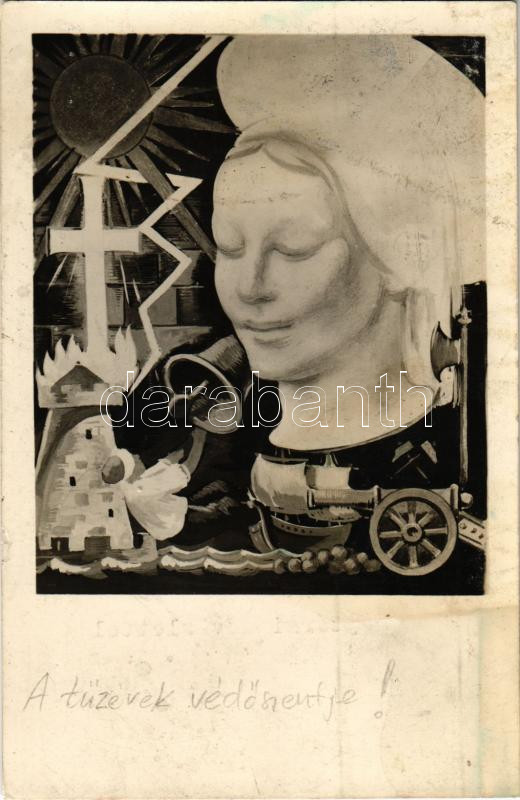 Beschreibung: 1948 Szent Borbála a tüzérek védőszentje. M. kir. 102. honvéd légvédelmi tüzérosztály kiadása / Saint Barbara s: Balogh András
