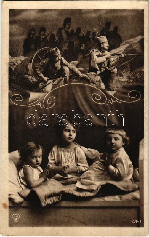 Beschreibung: Első világháborús osztrák-magyar katonai lap kisgyerekekkel / WWI K.u.k. military postcards with soldiers and children (EK)