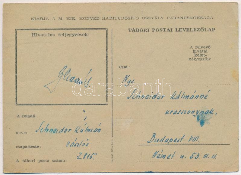 Karácsony. Tábori Postai Levelezőlap. Kiadja a M. kir. honvéd haditudósító osztály parancsnoksága / WWII Hungarian military field postcard, Christmas greeting (EB)