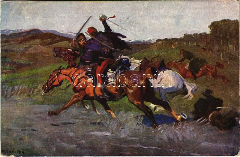Kozákhalál Máramarosban. A M. kir. honvédelmi minisztérium hadsegélyező hivatala kiadása / WWI Austro-Hungarian K.u.K. military art postcard, support fund s: Juszkó (EK)