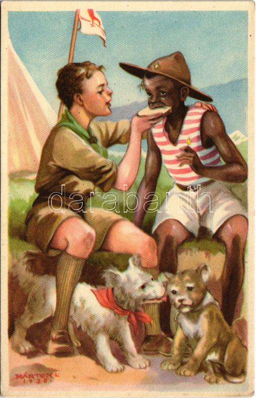 Beschreibung: A cserkész minden cserkészt testvérének tekint. Cserkész levelezőlapok kiadóhivatala / Hungarian boy scout art postcard s: Márton L. (EK)