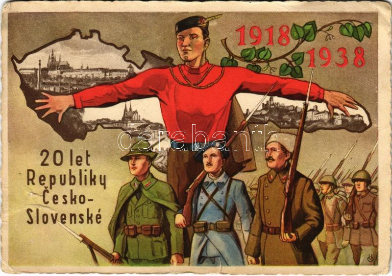1918-1938 20. Vyrocí Samostatnosti Republiky Ceskoslovenské / 20th Anniversary of the Independence of the Czechoslovak Republic + So. Stpl s: O. Usák (tear)