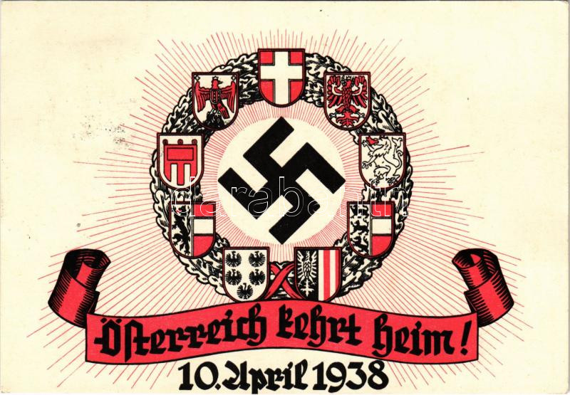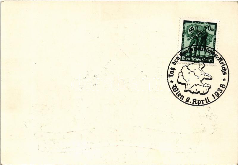 Österreich kehrt Heim! 10. April 1938 / "Austria returns home!" Austrian Anschluss. NSDAP German Nazi Party propaganda, swastika + "Tag des Großdeutschen-Reichs Wien 9. April 1938" So. Stpl.